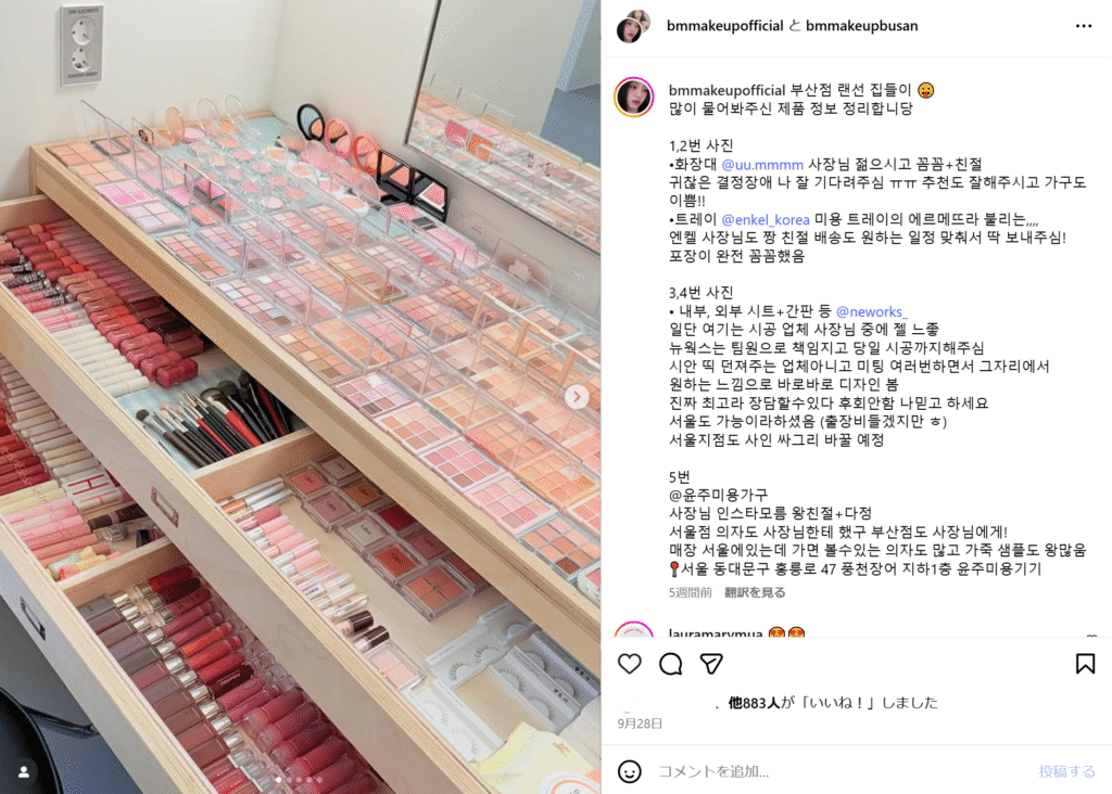 今は削除されてしまっていますが、フィードやストーリーズで出張のお知らせを日本語で投稿してくださいます。